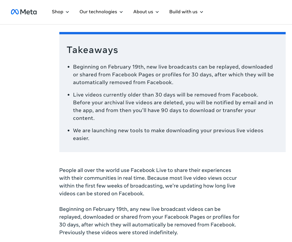 As of February 19, 2025: Facebook now automatically deletes Live Videos after 30 days.
